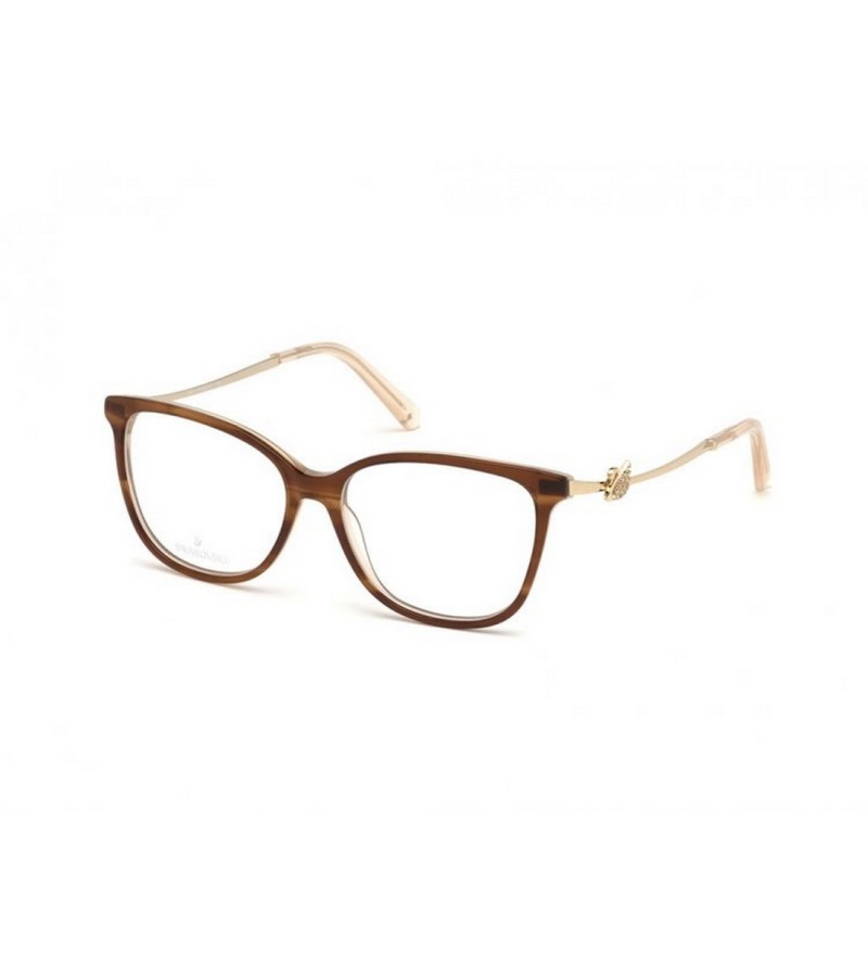 Occhiali da vista donna Swarovski in celluloide marrone con aste dorate e logo.