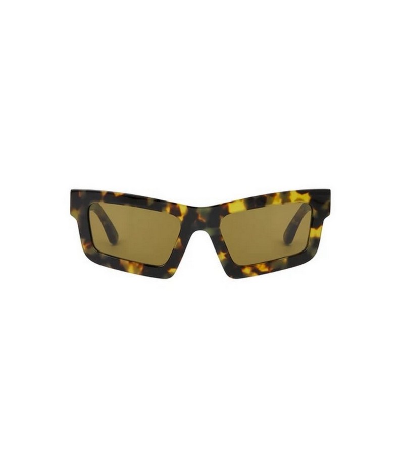 Occhiali da sole unisex Huma marrone tartarugato con forma irregolare e lente marrone uniforme.