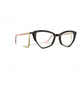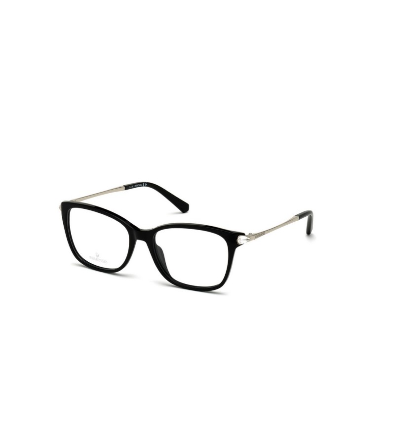 Occhiali da vista donna Swarovski in celluloide nero con aste in metallo argento e swarovski sul laterale.