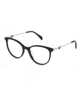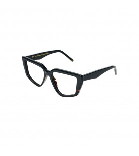 occhiali da vista donna JPlus in celluloide nero con forma irregolare.