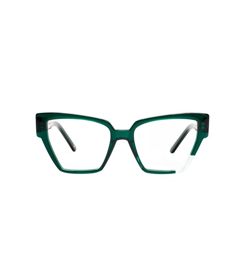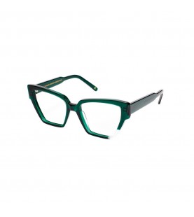 Occhiali da vista donna JPlus in celluloide verde con forma a gatta.