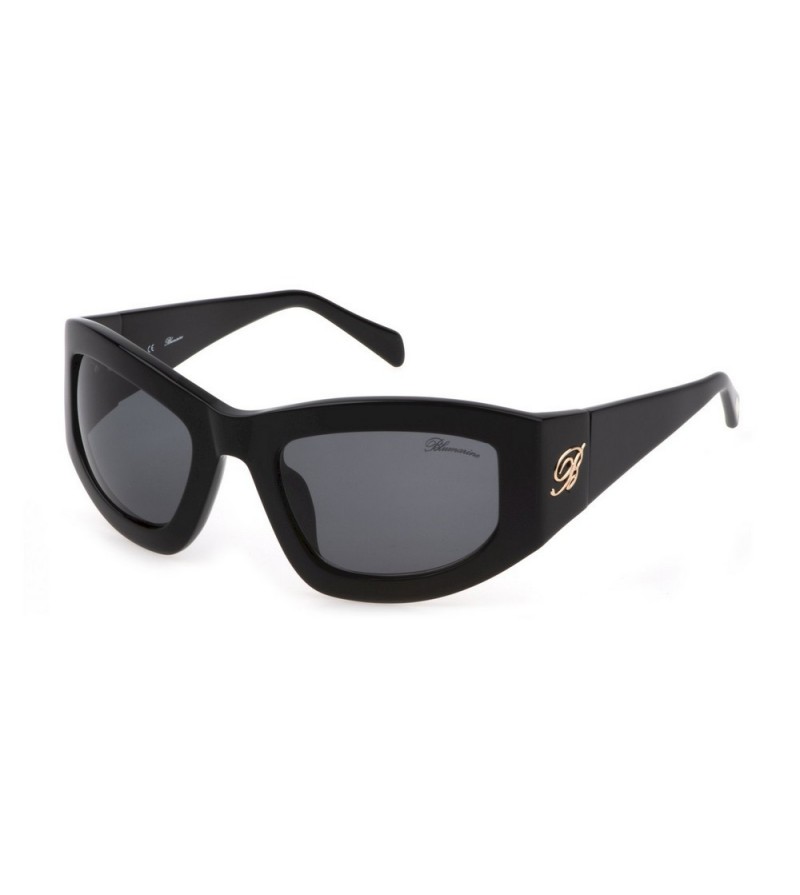 Occhiali da sole donna Blumarine a mascherina nero con logo.