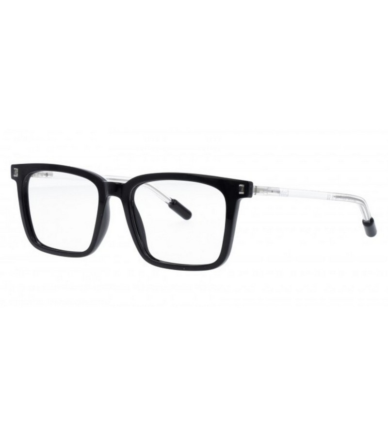 Occhiali da vista uomo Kartell in celluloide blu o nero con aste trasparenti.