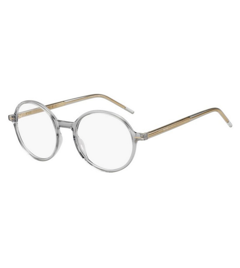 Occhiali da vista uomo Boss in celluloide nero o trasparente con forma tonda con dettaglio oro sulle aste.