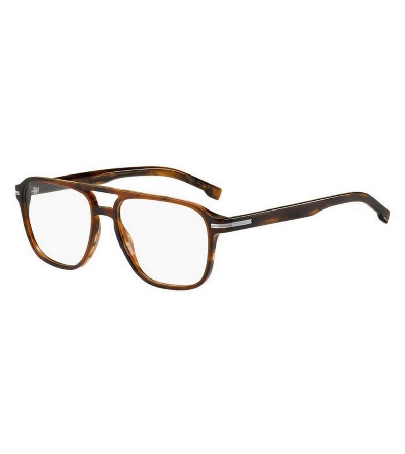 Occhiali da vista uomo Boss in celluloide marrone tartarugato con doppio ponte.