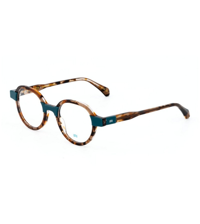 Occhiali da vista uomo Jisco in celluloide tartarugato con dettaglio verde o rosso.
