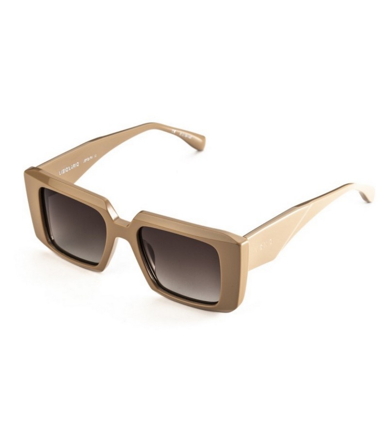 Occhiali da sole donna Visionario in celluloide beige con lente sfumata marrone.