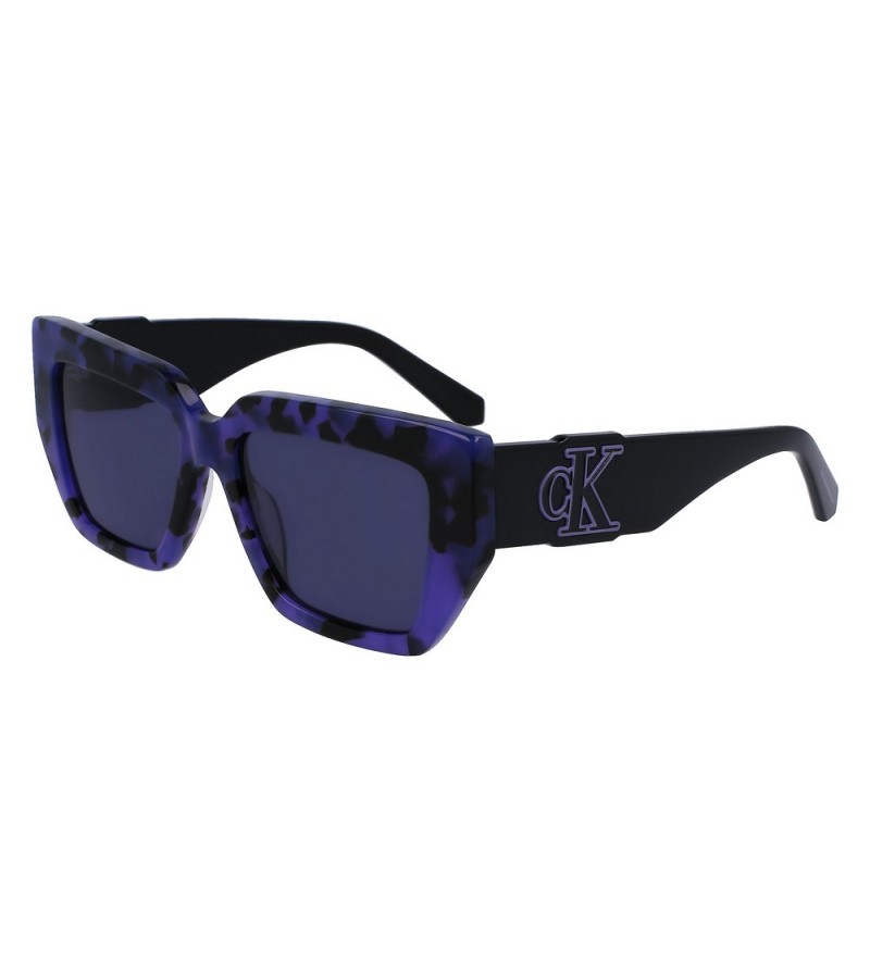Occhiali da sole donna Calvin Klein in celluloide viola con logo sulle aste.
