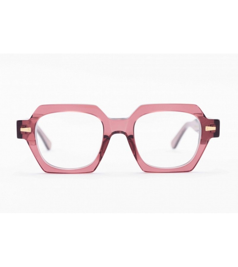 Occhiali da vista donna Kyme in celluloide marrone tartarugato o rosa con forma irregolare.