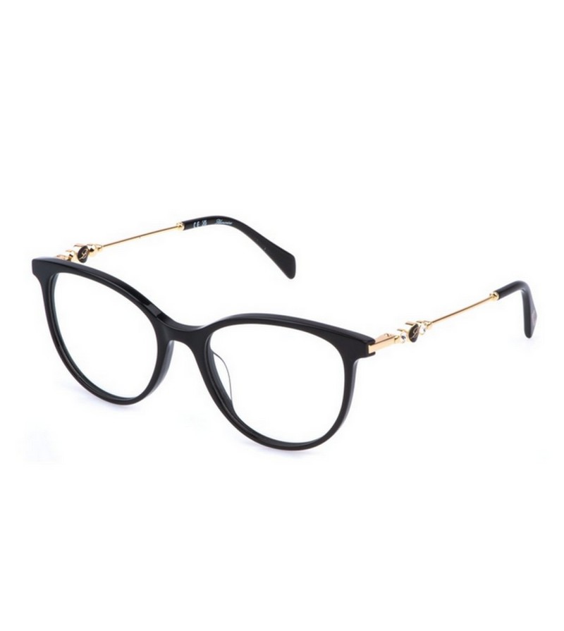 Occhiali da vista donna Blumarine in celluloide nero con aste in meatallo oro e strass.