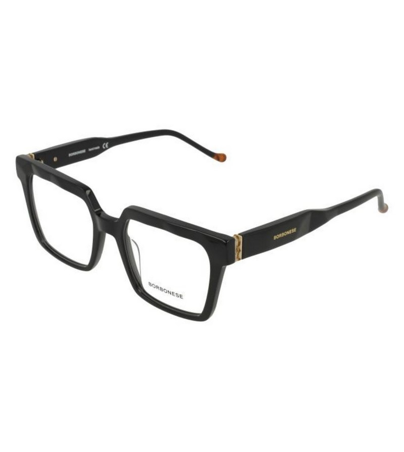 Occhiali da vista donna Borbonese in celluloide nero con logo sulle aste.