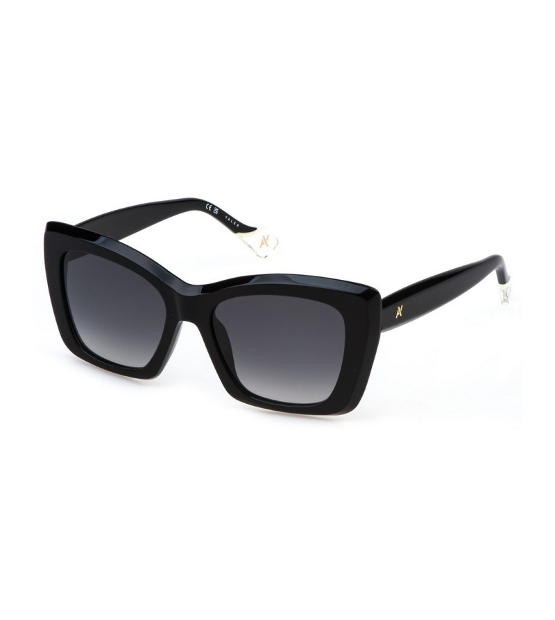 Occhiali da sole donna Yalea in celluloide nero con lenti sfumate.