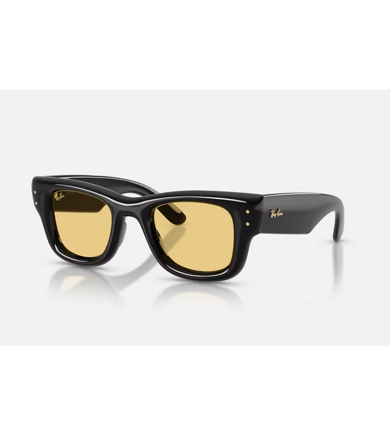 Occhiali da sole unisex puffer Ray ban in celluloide nero con lenti gialle.