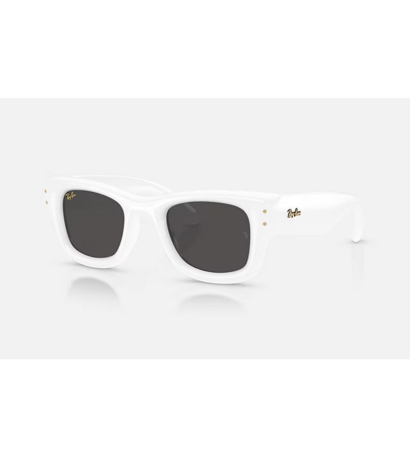 Occhiali da sole unisex puffer Ray ban in celluloide bianco con lente grigia.