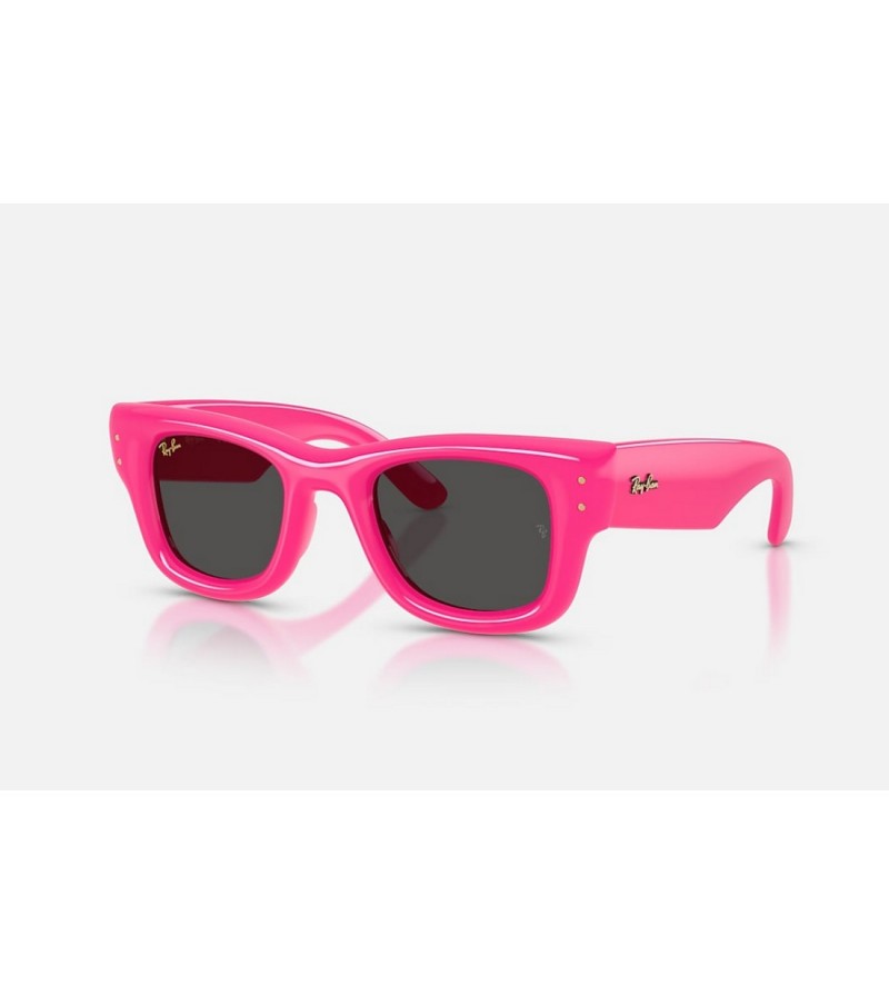 Occhiali da sole donna puffer Ray Ban in celluloide fucsia con lenti grigie.