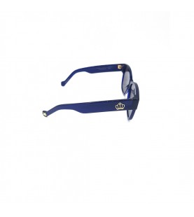 Occhiali da sole donna Catherine de Medici in celluloide blu con logo sulle aste.