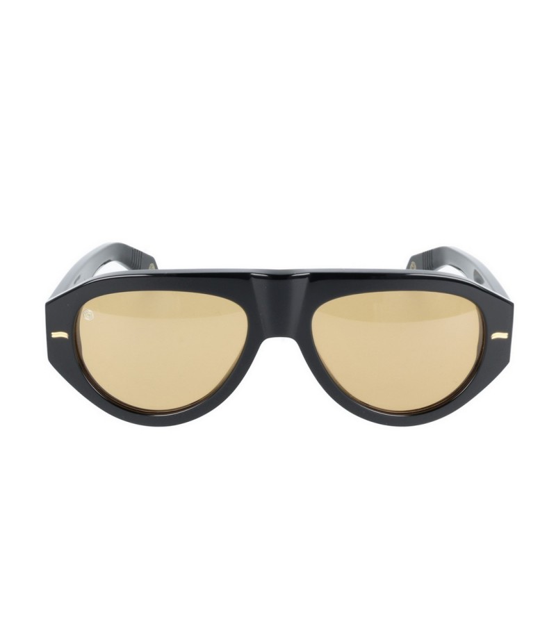 Occhiali da sole unisex Kyme in celluloide nero con lente gialla.