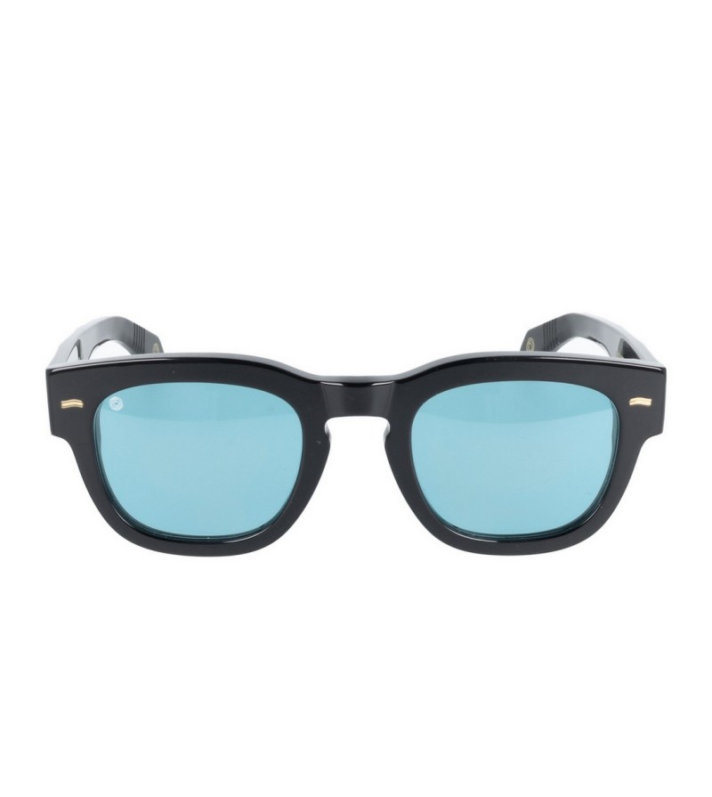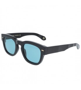 Occhiali da sole unisex Kyme in celluloide nero con lente blu.