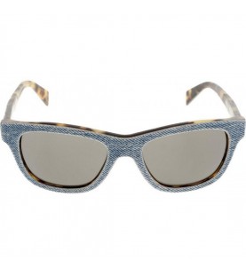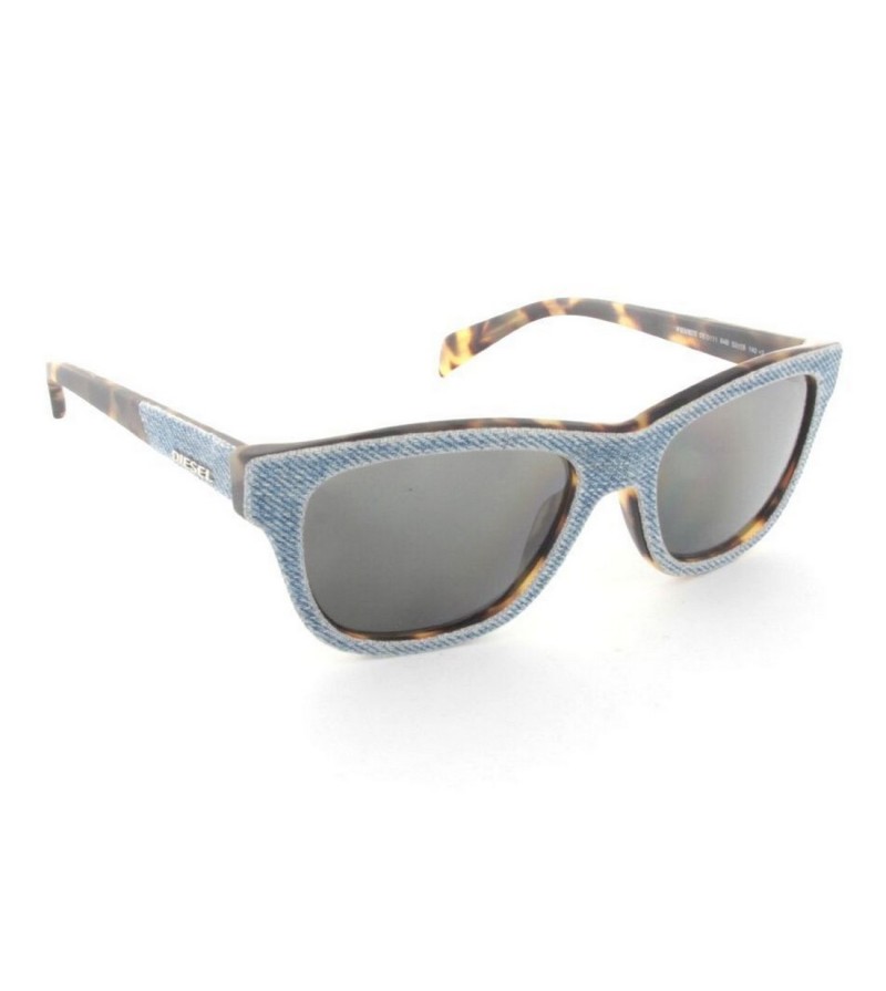 Occhiali da sole unisex Diesel in celluloide con tessuto jeans e interno tartarugato marrone.