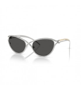 Occhiali da sole donna Swarovski in metallo con forma a goccia e strass sul doppio ponte. Disponibile in oro con lente marrone sfumata e palladio con lente grigia sfumata.