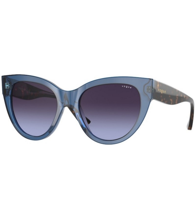 Occhiali da sole donna Vogue in celluloide blu con aste marrone tartarugato e lente blu sfumata.